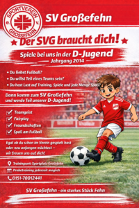 Spiele bei uns in der D-Jugend (Jahrgang 2014) Verfasser: Henning Buss Ein starkes Stück Fehn seit 1959. Facebook Instagram SV Großefehn e.V. © 2021. Alle